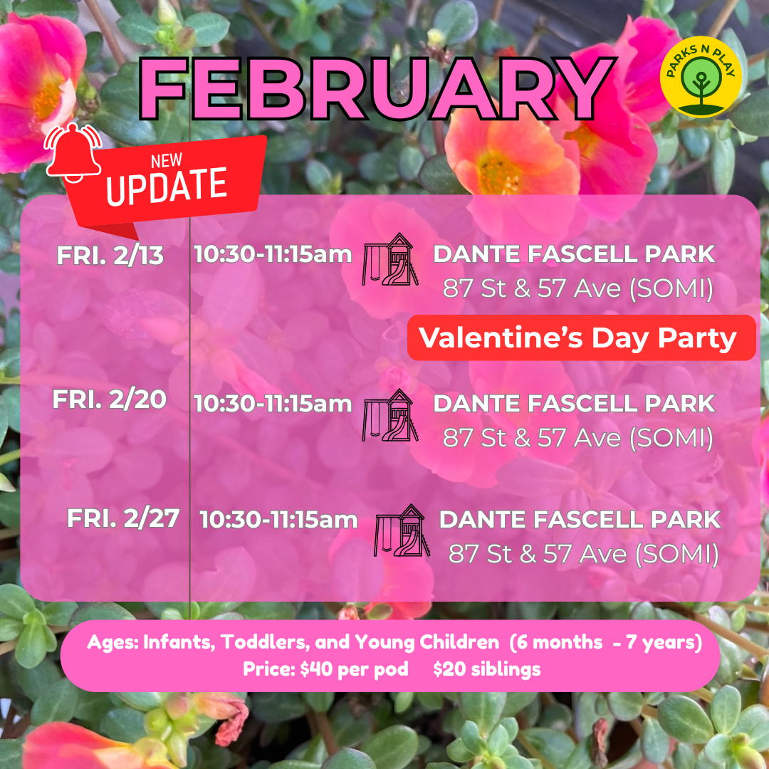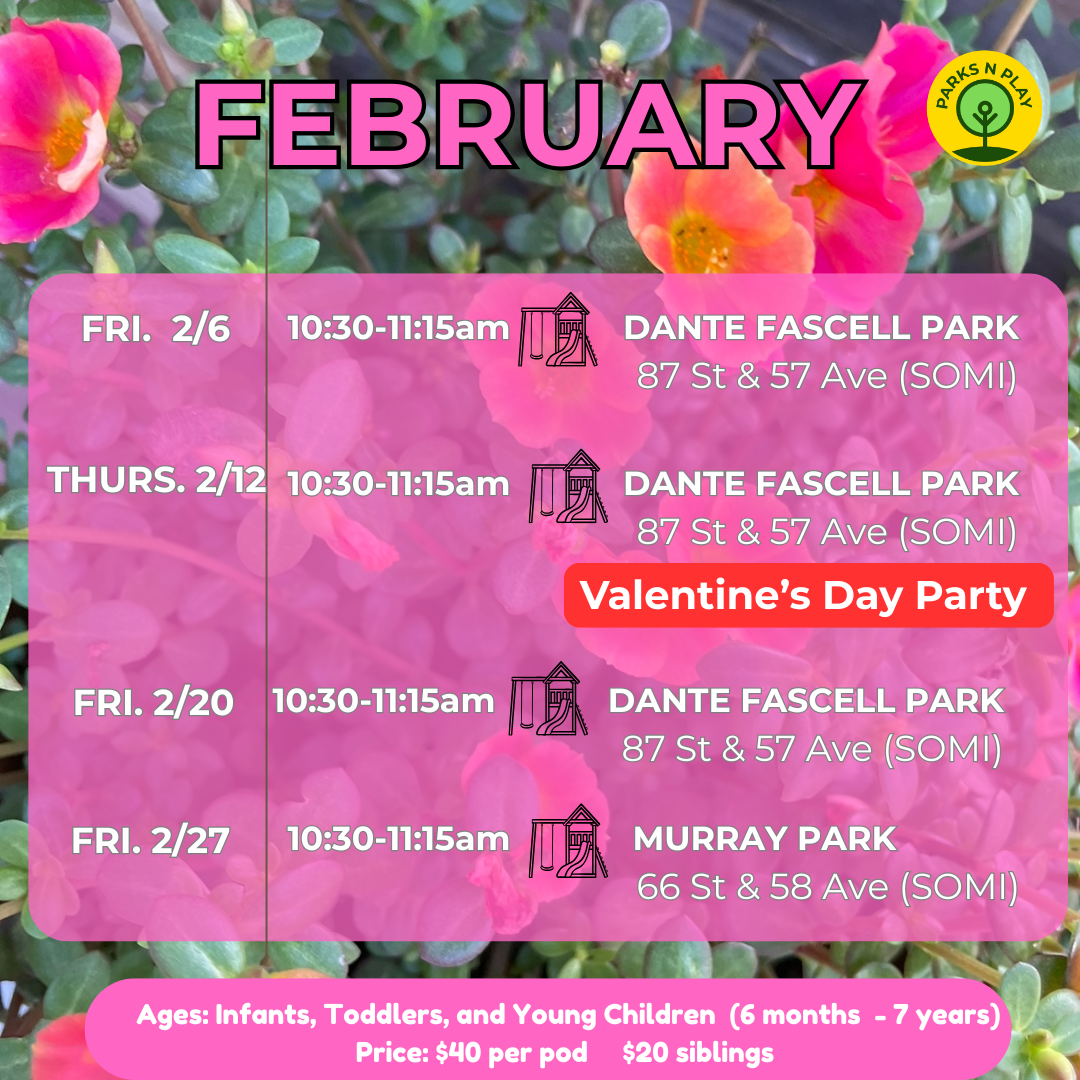 Play Pod Series: 6 week series offered at parks in the same vicinity or set park locations. Sign up required prior to the start date. Late comers will not receive a discount.