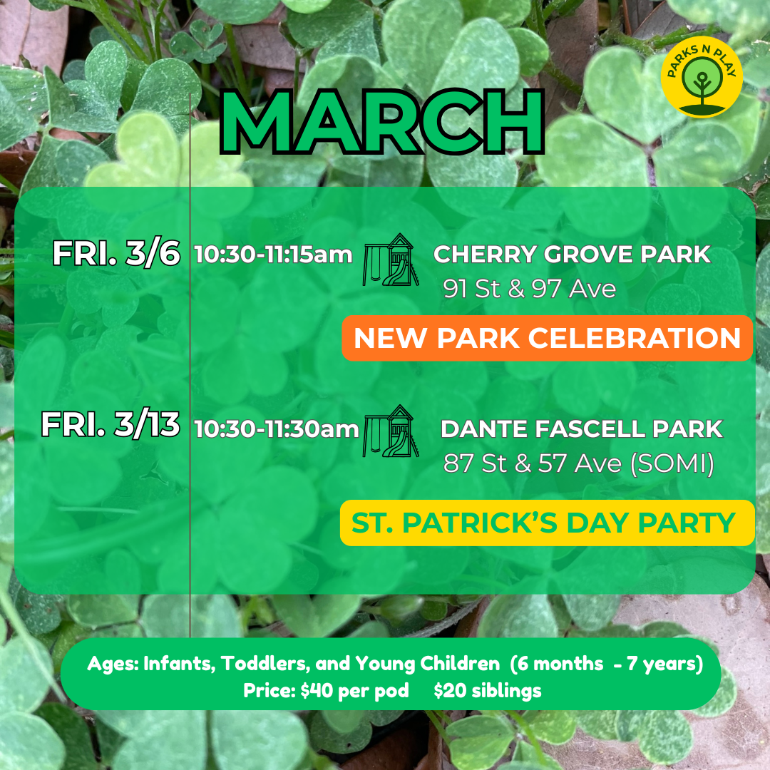 Public Play Pods: Join a one time pod and enjoy our themed lessons at a park or green space. Limited spots available to ensure quality.